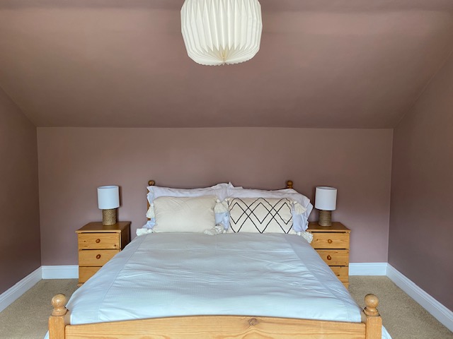 Upstairs is a comfortable double bedroom. The bed will be made with 100% cotton bedlinen and clean linen and towels are provided weekly if you are with us for a longer stay. All duvets and pillows are non-allergy.