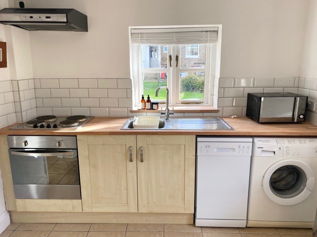 The kitchen is fully fitted with an electric hob, oven and extractor fan. There is an integrated fridge and freezer, a microwave, washing machine and dishwasher. You should find everything you need in the kitchen as we have made every effort for it to be fully equipped to the extent of a toast rack and champagne flutes.. but if you do find that there’s something we can always help.